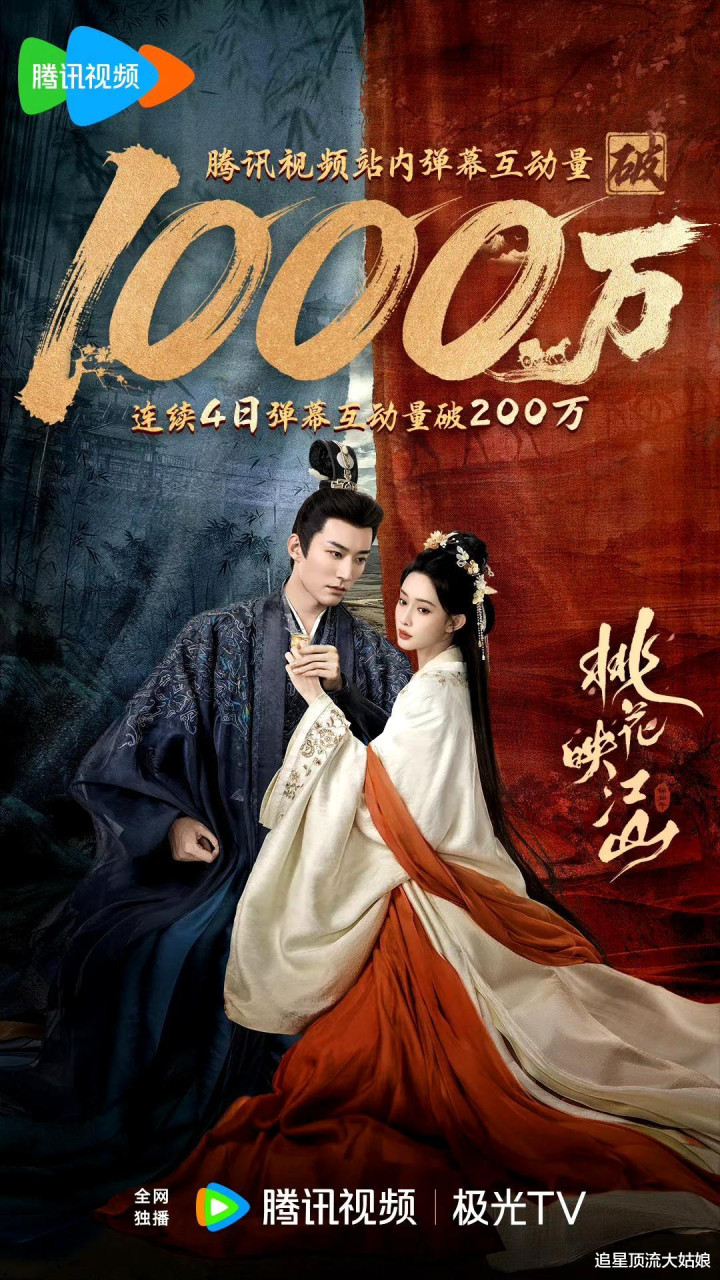 剧荒的,快来看《桃花映江山》,腹黑权臣 + 落魄公主,两人因政斗被迫成婚,从互杀互坑到联手搞事业,权谋博弈➕暧昧拉扯,双强过招爽感爆表。开播首日腾讯视频站内热度破23000,热度峰值达26000+,连续10日蝉联欢网大屏点播日冠,点播指数11次破万。微博主话题阅读量超637.1亿,抖音话题播放量20.6亿,全网有效播放量破3亿。