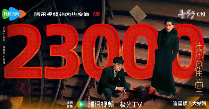 播出期间腾讯内热度值破23000,爱奇艺站内热度破6000,云合市占率达43.2%,稳居短剧热度榜TOP1。同时连续7日登顶猫眼短剧热度榜及有效播放榜冠军。抖音话题播放量1.6亿,相关话题总播放破3亿,登抖音热榜TOP5。